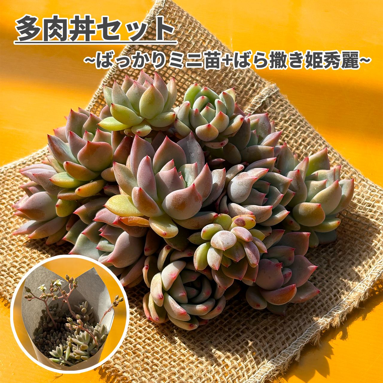 「姫秀麗」と「ミニ苗(全て同じ品種)」で、簡単に多肉丼を作れちゃうセット!